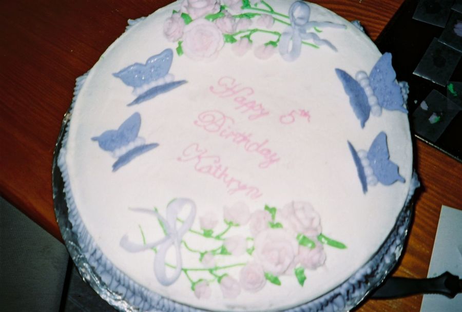This cake was done last year for my daughter's birthday; the whole reason I took the Wilton decorating classes! It's sorta plain and simple, but she is such a prissy girl, so flowers and butterflies it is!