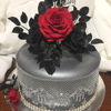 A friend of mine requested black roses. The roses are made from fondant. The fondant covering the cake is from McCalls in Canada, dusted with their silver satin. My friend put them in a vase afterwards and I included the vase picture in this photo set.