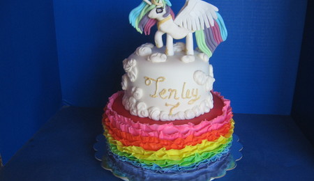 Double-barreled six inch round in fondant with edible sugar crystals.