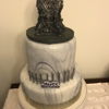 Birthday cake game of thrones marble look of fondant in chocolate bottom tier and yellow top with smbc filling