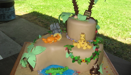 Carved cake covered tith chocolate gnasch. Lava made from colored hard candy.