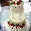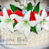 A very romantic vintage style cake for a young couple. The lovely bride wanted a floral cake and pointed out one of my vintage style cake as inspirations. I made the design and she was pleased. This one was absolutely within my comfort zone... my kind of cake! Once I finished I thought McKinley Wilton will be proud of me! White cake frosted and filled in buttercream. Roses, lilies and greenery in fondant. Piping in buttercream.