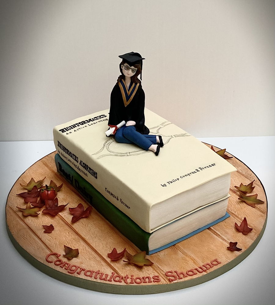 These were Chocolate Fudge and Madeira cakes styled as books our Graduate had studied.