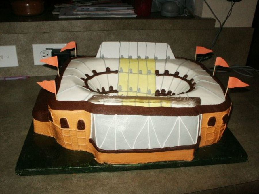 Just for fun, I was asked to make a football theme cake for a little guys birthday. I baked two half sheet cakes and sculpted this football stadium. He like the longhorns, hence the orange. The cake turned out ok, I wish that I had done a better job on it. The family loved it.