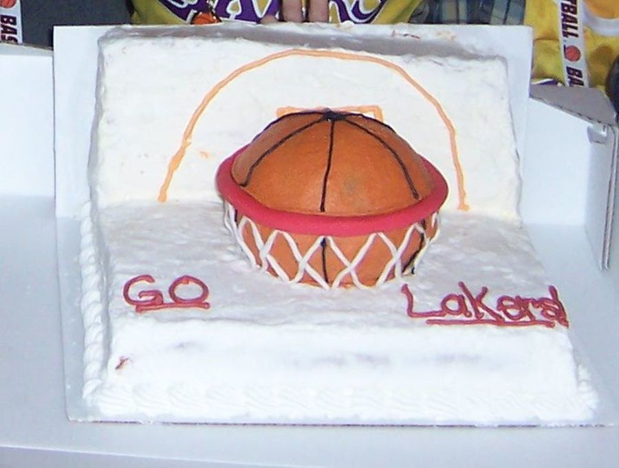 Dunked basketball cake for my son's park team pizza party. I used the round cake pan for the ball and fondant for the rim and net. The boys thought it was very cool! I was kind of rushed so my backboard wasn't the best but it all tasted good just the same.
