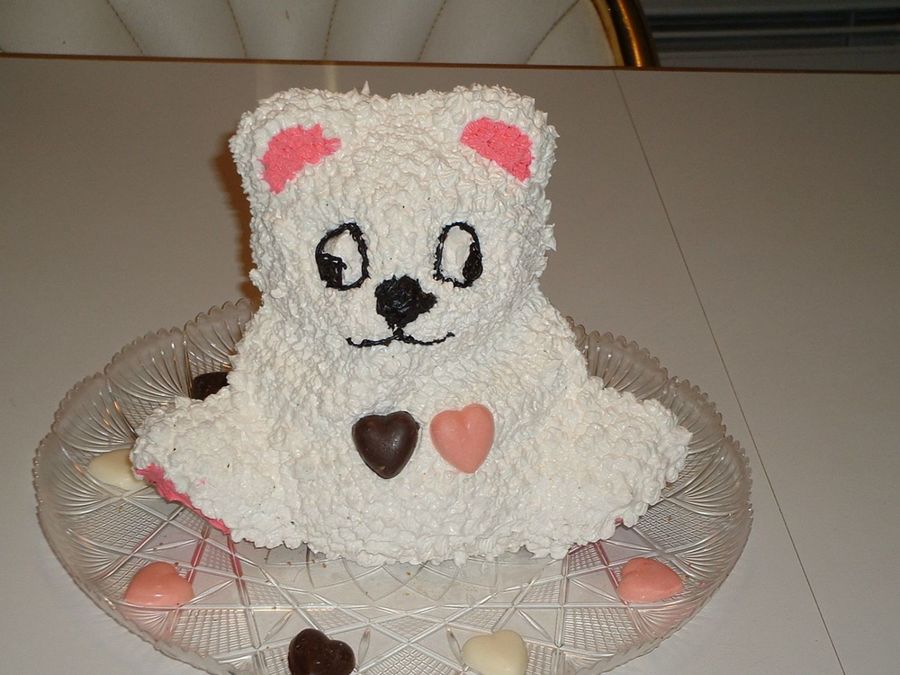 Cookie4 on 29 Mar 2007 , 6:24pm Your Teddy Bear cake is just adorable - I love the heart accents too. Very nice job.