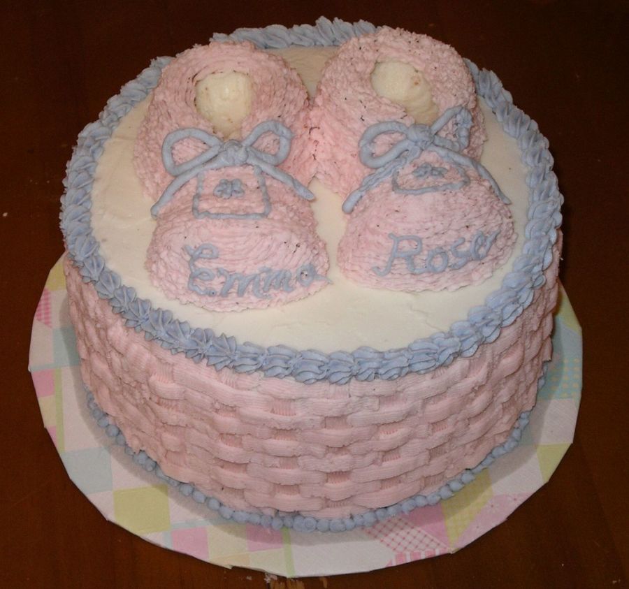 My first attempt at the basket weave technique. And I got the instructions for the baby booties from http://members.nuvox.net/~zt.proicer/cakepict/babybootie-ck.htm.
