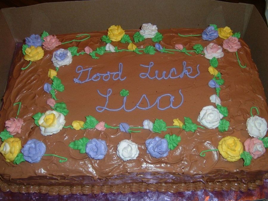 Chocolate orange cake with chocolate orange cream cheese frosting and filling from the Chocolate Cake Doctor book. Buttercream roses.