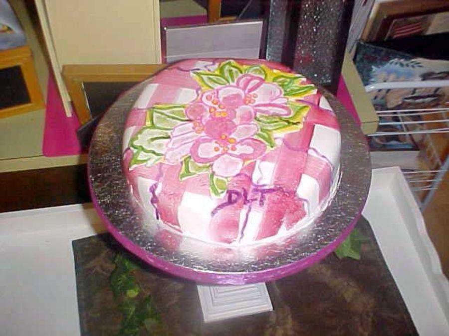 dsoutherngirl I think you did an awesome job painting!!! I love this!! How long did you let your fondant sit before painting on it and what did you use for your color? I think you've got the knack for this! I love the plaid bkgrd too!!!! Great work!!