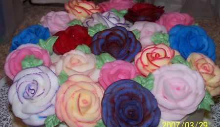 Thank you all for the wonderful compliments! amecakes, I did the red/violet ones by putting two different colored icings in the bag. The others are brush striping.