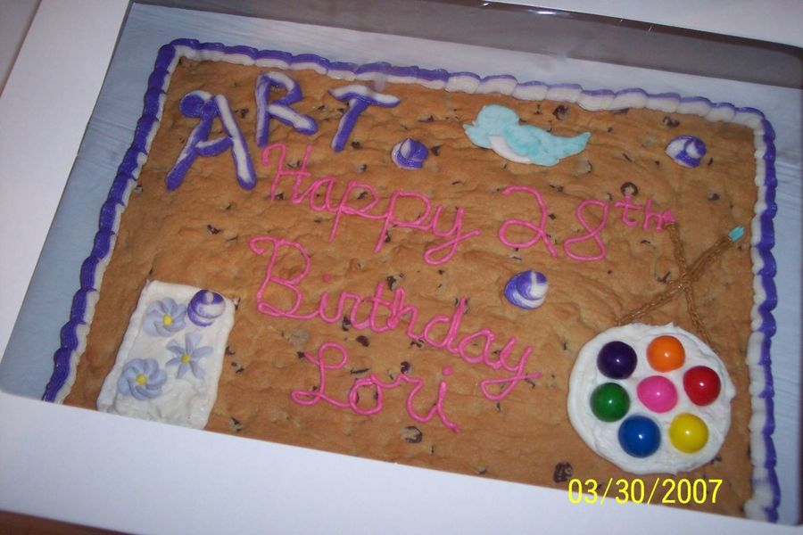 Sugar_Plum_Fairy on 27 May 2007 , 10:40pm Cute idea! Like the fact that it's a cookie cake - pretty artsy all by itself!