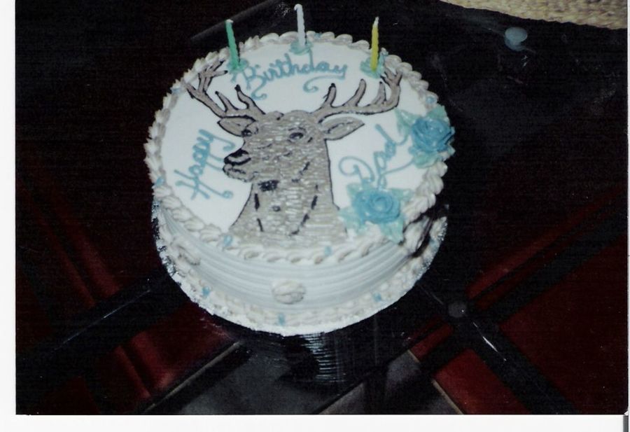 Moose drawn on free hand in butter cream icing then smoothed, Cake is butter cream iced and filled.