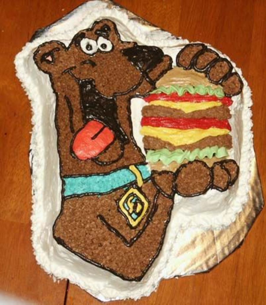 This was my nephews 3rd birthday cake. It was super simple, except for all those colors! Ugh! I told my husband an hour or so to do the cake and it took me at least 2 1/2 after I had to keep mixing more colors. Next time I do the cake the burger is turning into a present box! The only other problem was I thinned out my black too much so it was a little thick. I was tired and ready to quit so I just let it go!