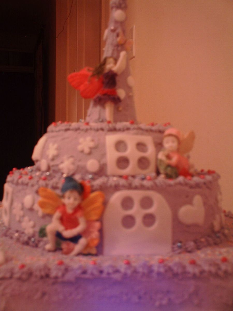 Cute cake! Fairies are cute too! Picture is quite blur tho'.