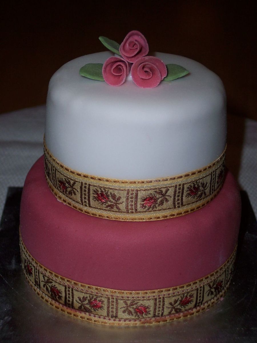 Cookie4 on 1 Apr 2007 , 6:12am This cake is so elegant. I love the color of the bottom layer and the use of ribbon just 'makes-the-cake'.