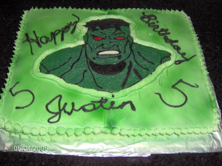 Elvira_one on 5 May 2005 , 2:10pm This is great for a first cake. I love how the hulk's eyes look like the are glowing at you keep up the great work