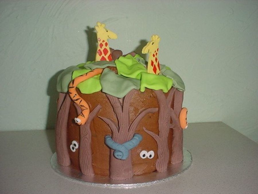 chocolate sponge covered with chocolate butter icing and decorated with modeling paste