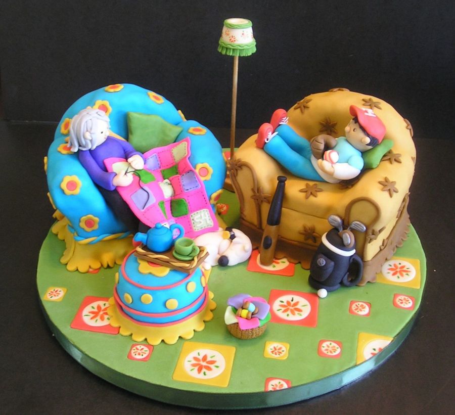 bodaisy - I "stole" the idea from Debbie Brown. She has made a cake for Wallis and Gromit that uses the same chairs and carpet. I just thought the other things up with the information the father gave me. It was a great cake to make and they apparently took it round to all their friends for a week before they cut it - sweet hey!