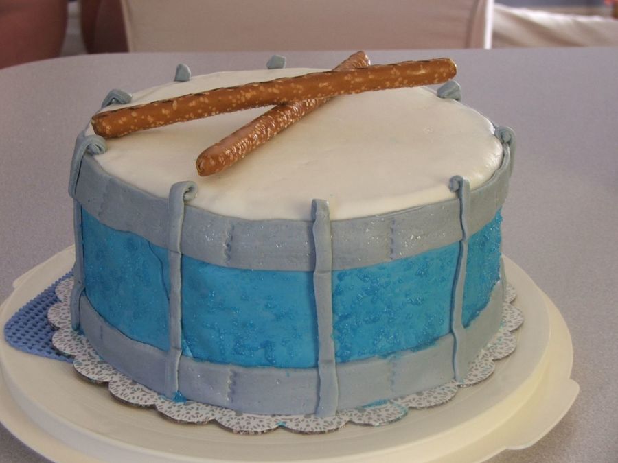Great job! Very realistic looking drum. Fun idea using pretzels as drum sticks too.