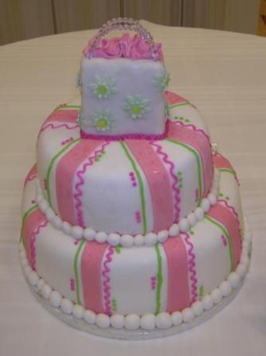 I did this cake for a YW night. All of the girls loved it. This cake is made of white cake covered in MMF and buttercream. The bag is done with rice crispy treat as you can tell and the tissue is also made of MMF. Handle was none edible.