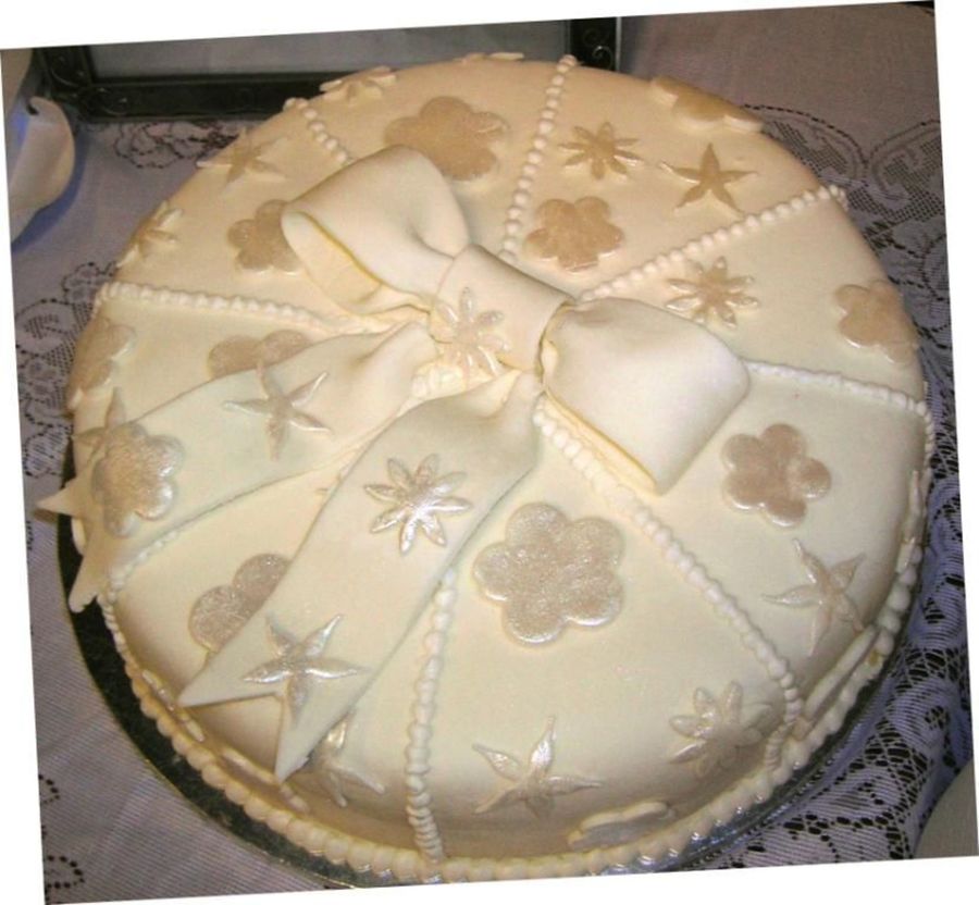 Cookie4 on 3 Apr 2007 , 5:36am I love what the pearl dust does to the accents on your cake - very beautiful!