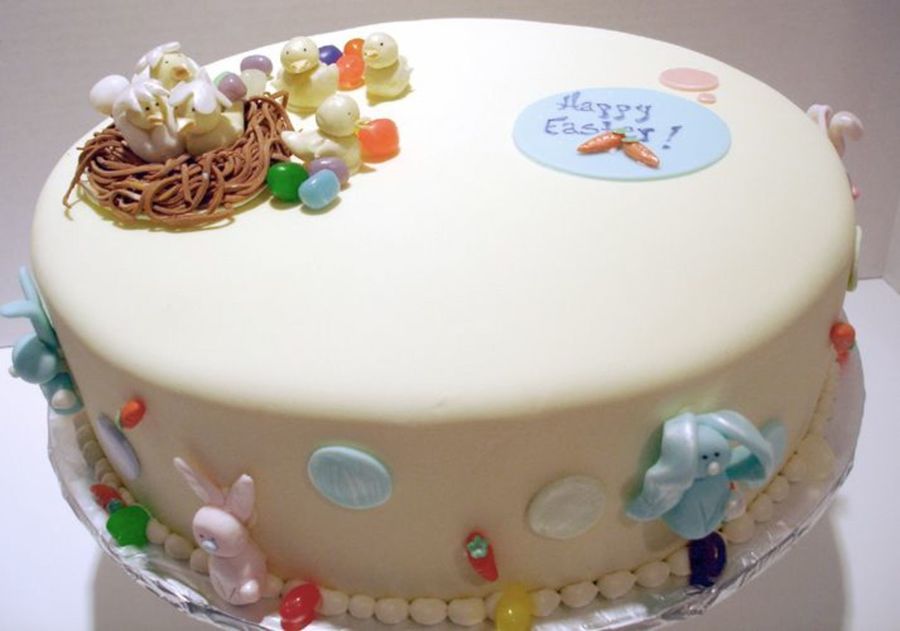 PinkCakeBox on 29 Apr 2006 , 7:22pm Thank you :) No it's fondant...I'm not that good at buttercream! Ha! The rabits and chicks are made out of sugarpaste