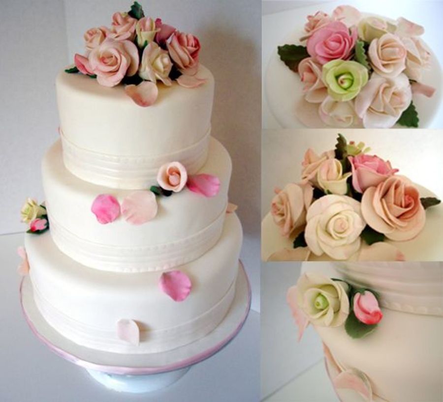 3-Tier Wedding cake with sugar flowers and vanilla filling