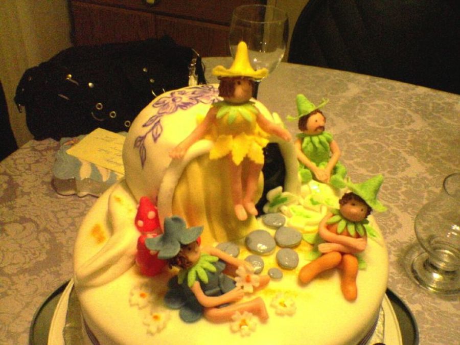 My vision of pixie teapot house from Debbie Brown's for my friend's bithday. This is my first decorated cake ever, still need lots and lots of pratice. My friend was verry happy with it and I enjoyed make it. Thanks for looking.