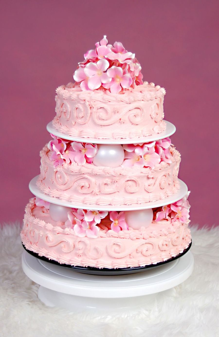 Very pretty...for my first practice tier I didn't let the cake cool enough before frosting and the layers slid apart...pretty funny. You did a great job!