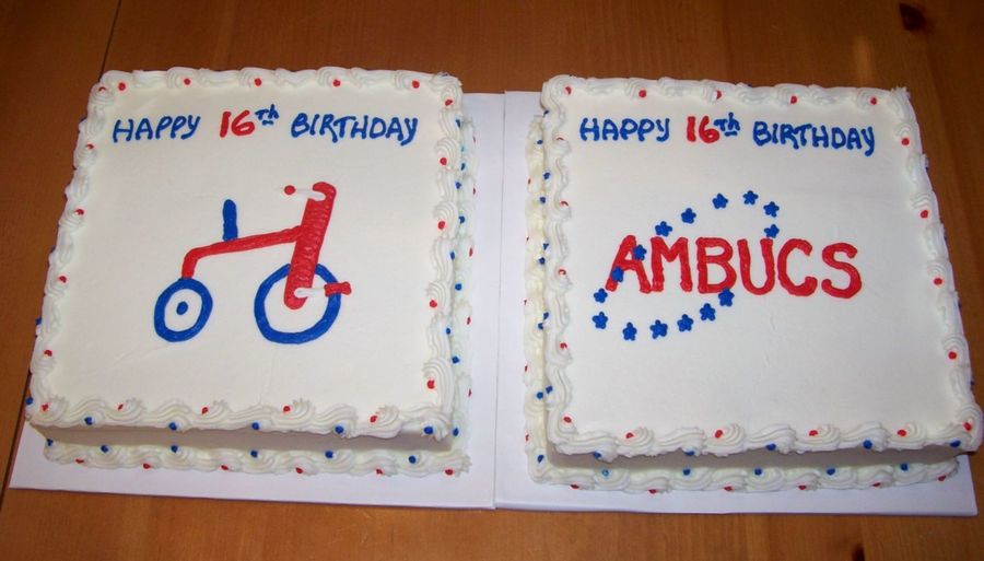 These cakes were created for an Ambucs BD party celebrating 16 years of the Amtryke. This special bike was created by a friend of mine that is a member of Ambucs. Ambucs took her concept and now market the Amtryke. Given to handicap children free of charge.