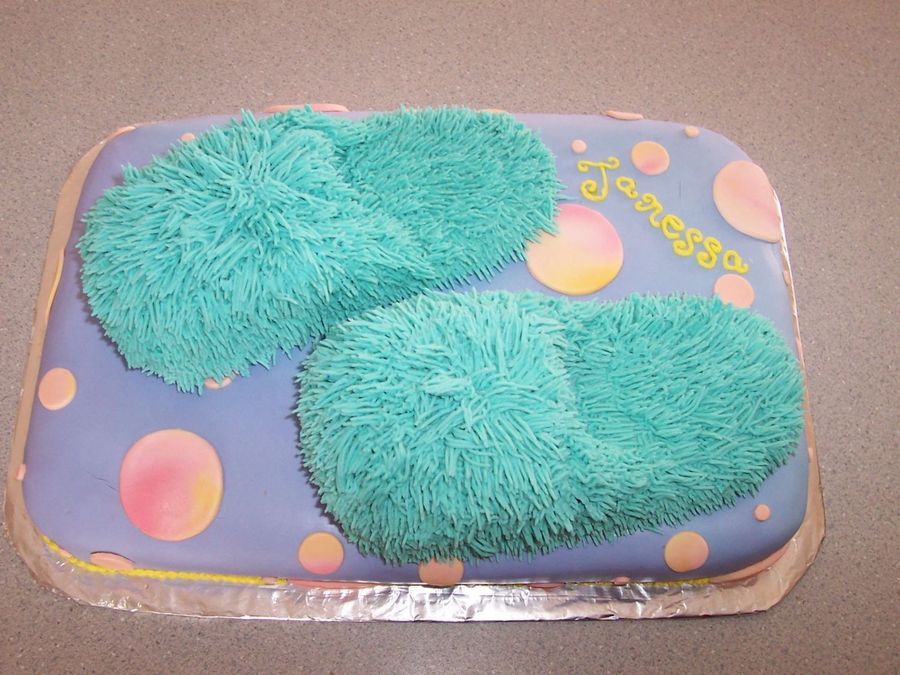 Love your cake! I have a pair of those slippers on right now!