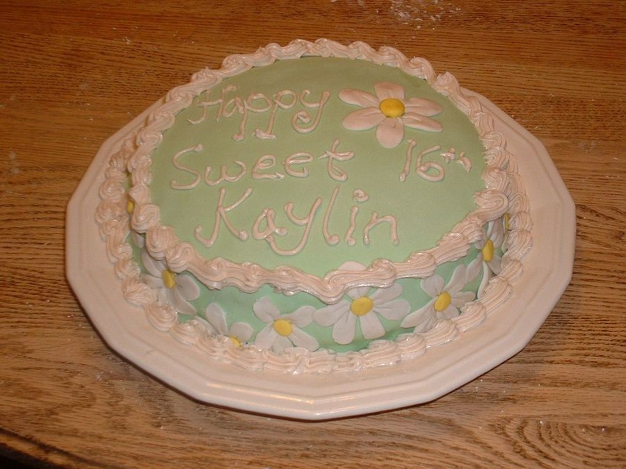 This was a birthday cake I made for my friend last August. It was my first time doing an actual decorating job, and also my first time with fondant. The daisies are also made out of fondant. Not the best, but I'm proud of it!