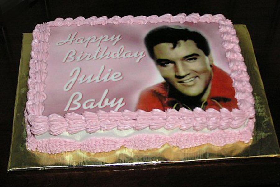 I got this order late yesterday evening. Friend of a friend kind of thing. It was fun searching for just the right photo of The King. Orange cake with champagne flavored whipped buttercream icing.