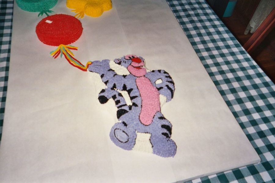 There was this mother that called me and wanted a tigar cake ,but she said she wanted it to be purple and pink. She said that she asked another person if they would do it that why and they said no that he wasn't that color and she wouldn't do it. But I think that it turned out really cute this way.