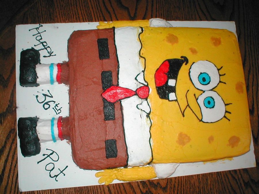 This is my first Spongebob cake. It turned out pretty good. The cake is marble, the frosting is bc. It was a hit at the birthday party.