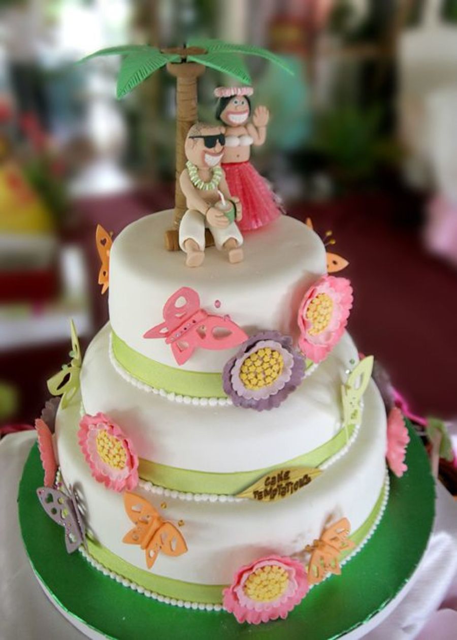 I made this cake for my close friends, Marlon and Lotlot. A customized cake and a detailed caketopper in hawaiian suit...