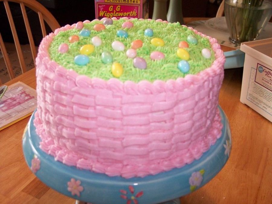 8 inch chocolate layer cake with cookies and cream filling/BC decorations. Jellybean eggs.