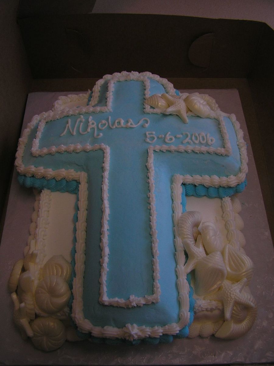 First Communion Cake - Marble Cake with Buttercream icing and white chocolate seashells