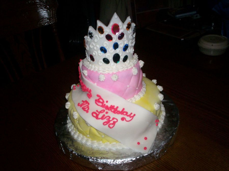 Rosalinda on 11 May 2006 , 5:21am I cut the crown out of fondant, added plastic gems, and added luster dust and royal icing scroll work.