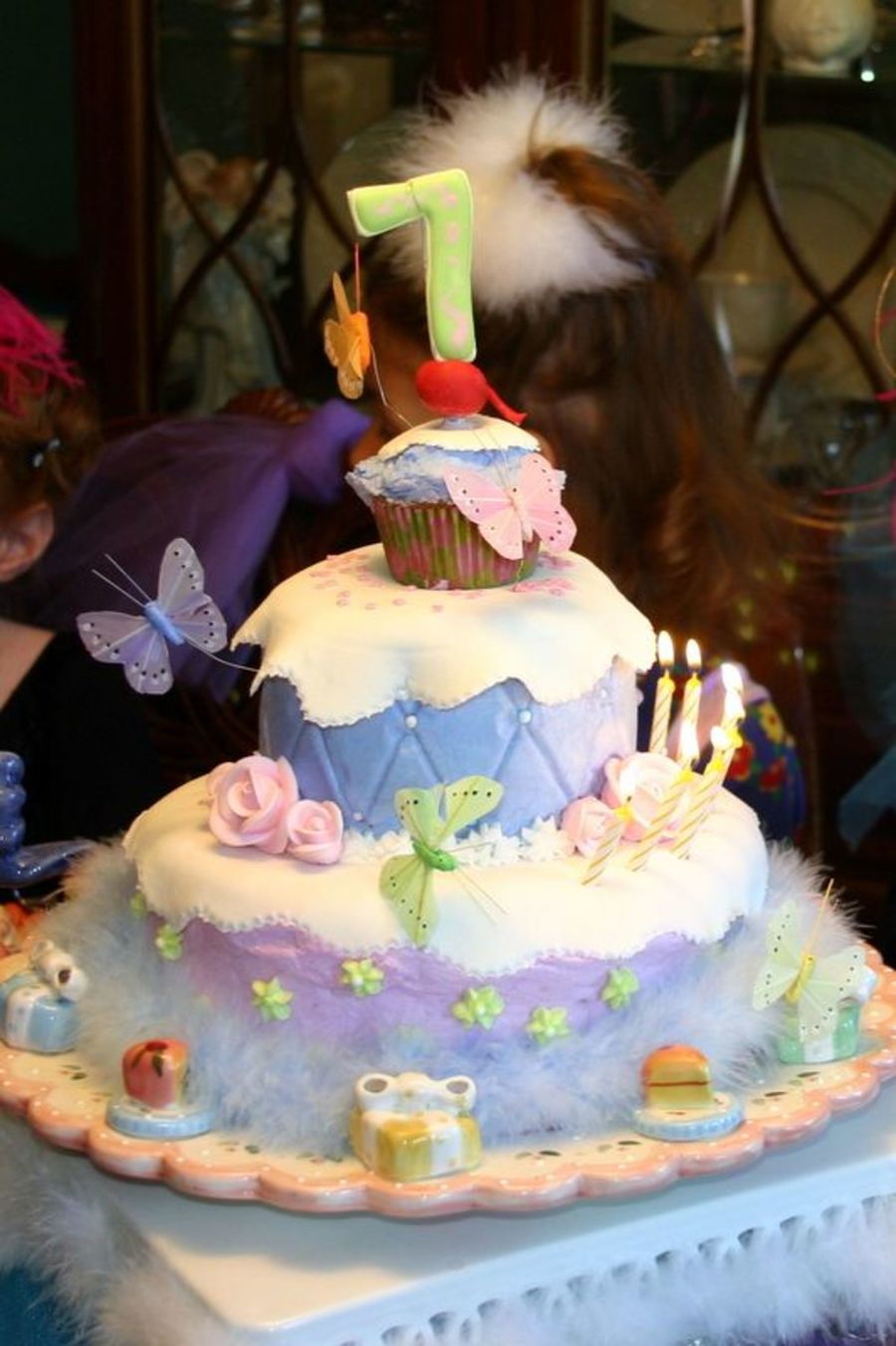 This cake was for my daughter's seventh birthday (Fancy Nancy theme). The bottom layer was strawberry cake, middle layer was sour cream pound cake, and the top was a confetti cupcake. MM Fondant topped each layer. On the middle layer, I used a diamond impression mat. Fondant pearls were used at the diamond intersections.