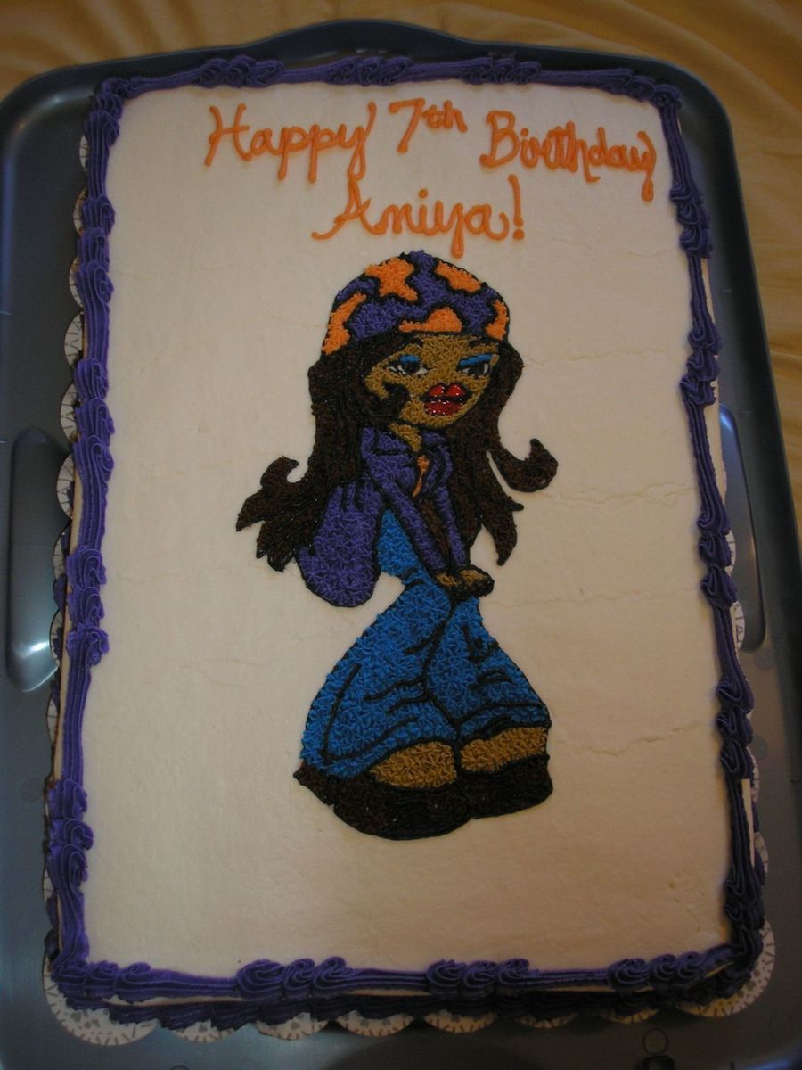 1/2 French Vanilla, 1/2 Chocolate, 12x18 with buttercream. Traced outline of picture, freehanded rest.