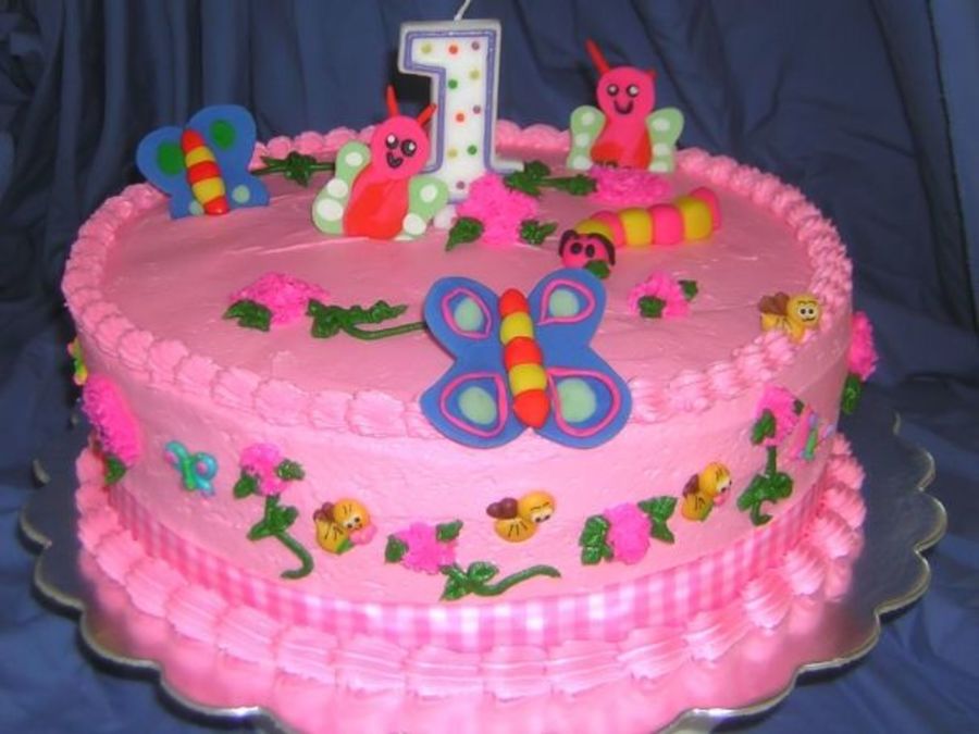 1st birthday cake. 12" Springfetti filled and iced with pink buttercream. All decorations are made with fondant.