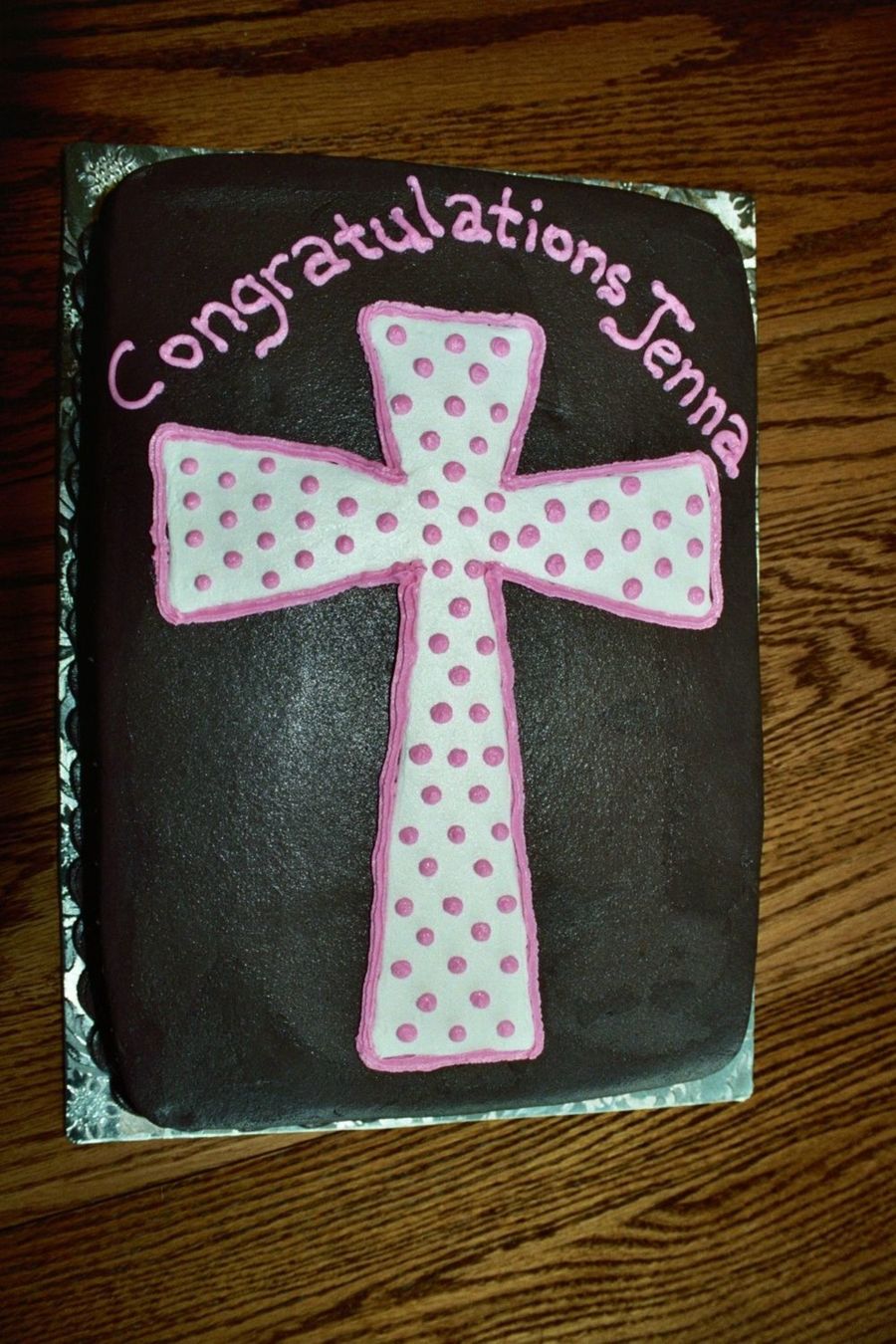Chocolate cake/carmel cake w/ carmel filling and chocolate frosting. First communion cake