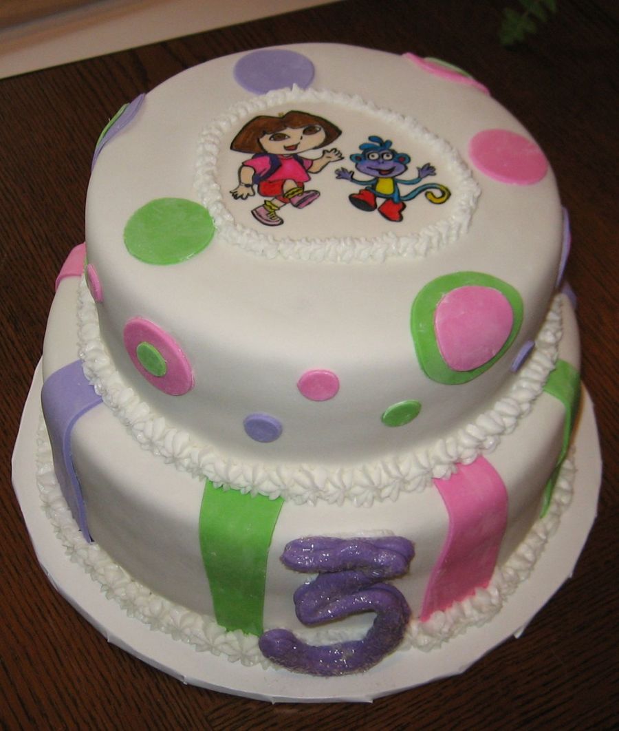 I made this cake for a friend of mine's little girl. I hand painted Dora and Boots using icing colors.