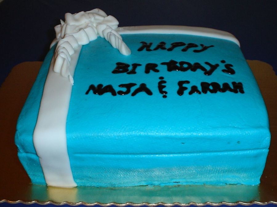 farrah on 12 May 2005 , 5:23pm It's actually buttercream colored with teal/aquamarine color then I used fondant for the strips and the bow on top is buttercream