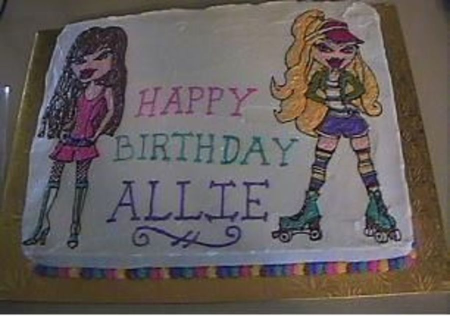 Here is a Bratz cake that I did for my grandaughter. I copied the Bratz from a Bratz shoe box.