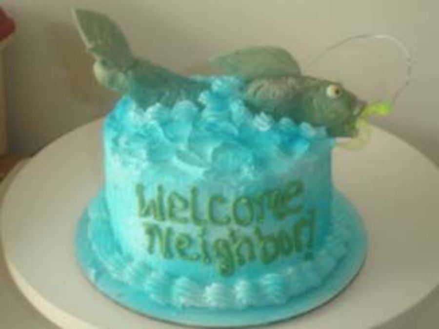 I got this idea from someone here on CC? It was an order for a customer who wanted to give their new neighbor a cake. He is a big fisherman! Cake is all BC, airbrushed. Fish is made from Fondant.