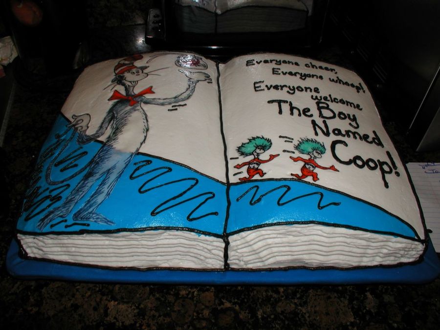 This couple was expecting a baby boy named Cooper (Coop for short), and they were doing his nursery in Cat in the Hat, so I did the cake like that famous book.