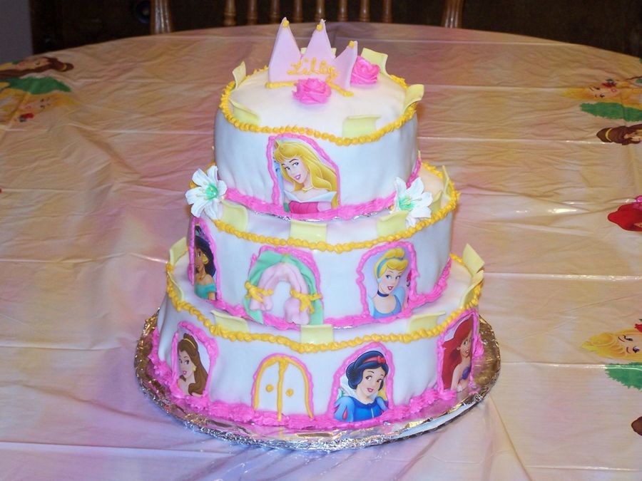 I got a plastic Princess birthday cup at the store cut it up and put them in the windows of the castle. The crown on top didn't turn out right I'm still new at using fondant. The top two layers were rice crispy and I didn't ice them before I put on the fondant so they were lumpy. I used real expensive fondant that was before cake central taught me about MMF.
