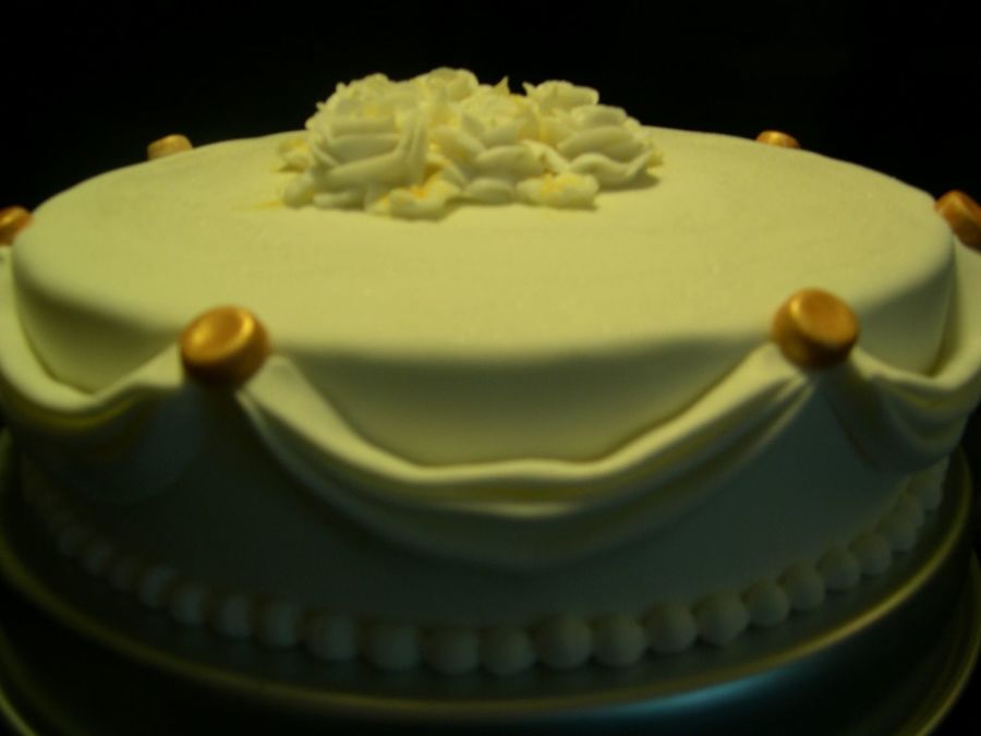 Demo Cake - Roses are BC, everything else fondant/gumpaste. First time with drapes and 2nd time covering in fondant. Planned to do a fondant bow, but didn't work.